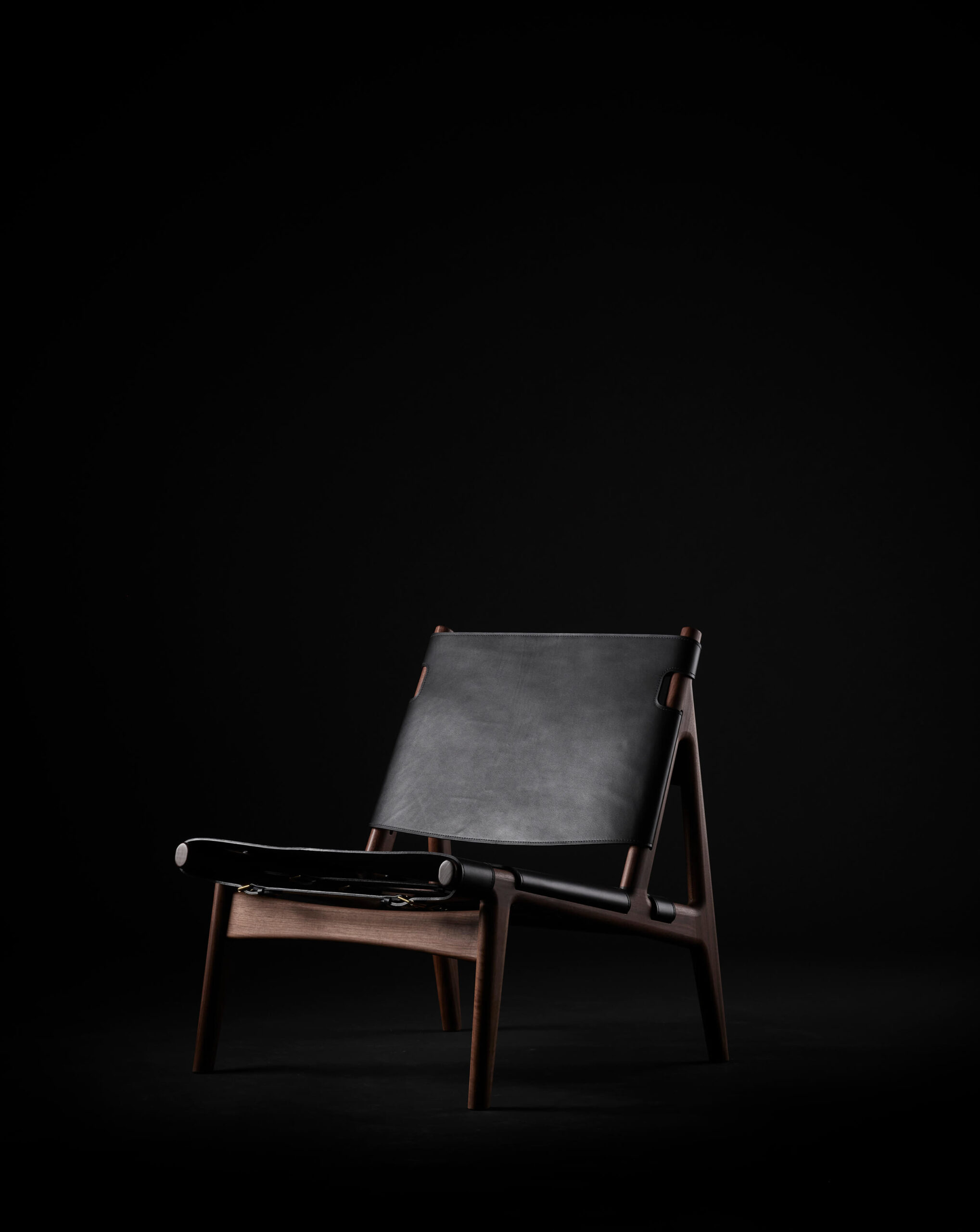 The way that the saddle leather is stretched around the wooden frame with adjustable belts, makes this a perfect example of the category “hunting chairs”. These lounge chairs were immensely popular in the 1950s-60s and have now defined themselves as modern-day classics. Torbjørn Afdal designed the frame with a minimalistic aesthetic focusing on a fluid and organic form in contrast to other hunting chairs. “Simplexity” is a good description of the Hunter composition. This can be seen in the double layered leather with its matching edge stitching, together with its solid cast brass buckles. The Hunter lounge chair is a highly detailed piece with craftsmanship to last for generations. Designed in 1960.
