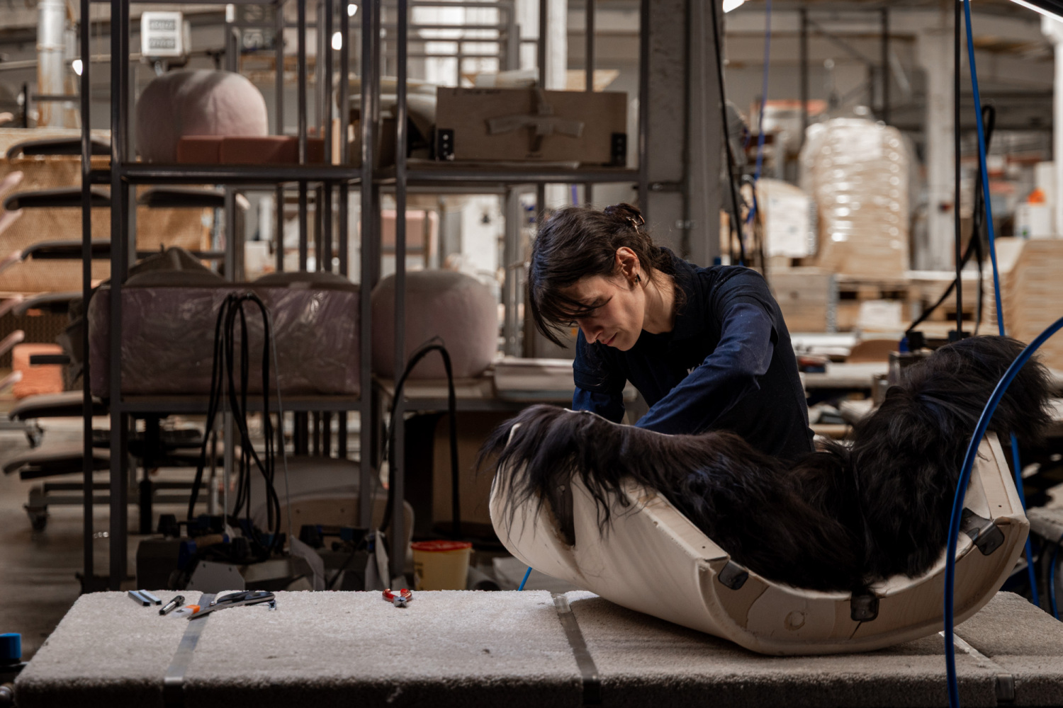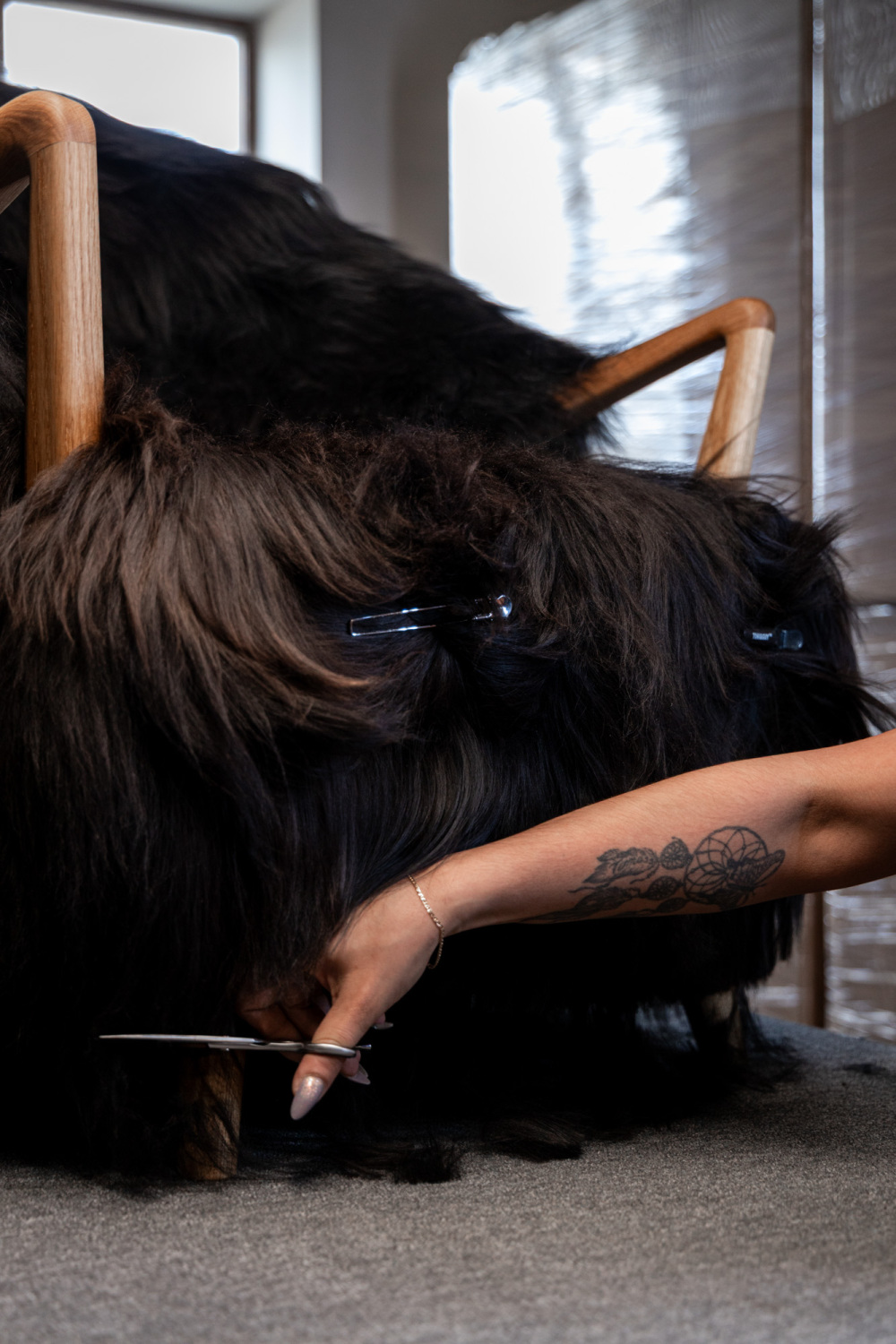 The Fluffy Chair may be the most edgy piece in our collection. The addition of long-haired sheepskin introduced a bold, tactile layer to a familiar form, making it a true stand-out piece.